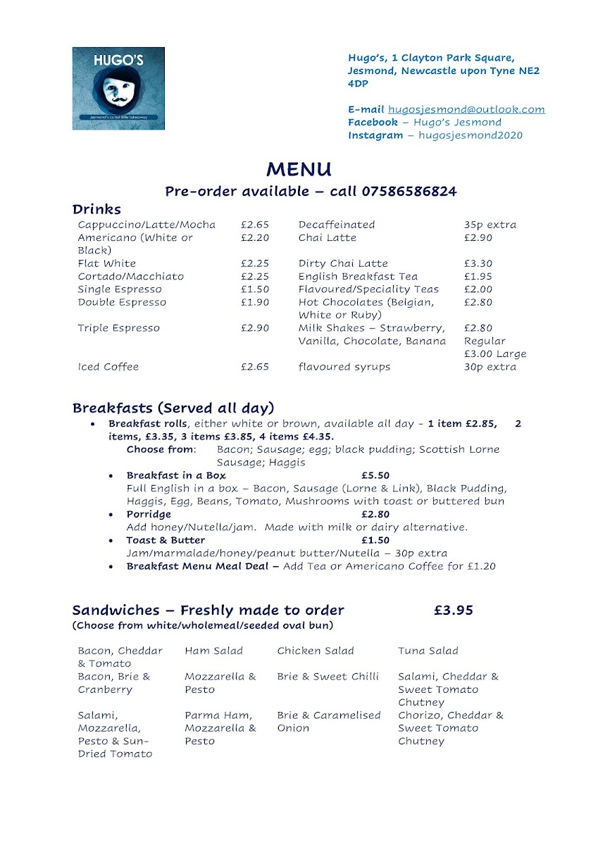 Whether you’re stopping by for your morning coffee, a light lunch, or a sweet afternoon treat, Hugo’s Coffee & Snack Takeaway provides a unique and delectable experience that will keep you coming back for more. With its scrumptious offerings, reasonable prices, and fantastic customer service, you’ll find that this café is not just a place to grab a bite, but a warm and welcoming corner of Jesmond.